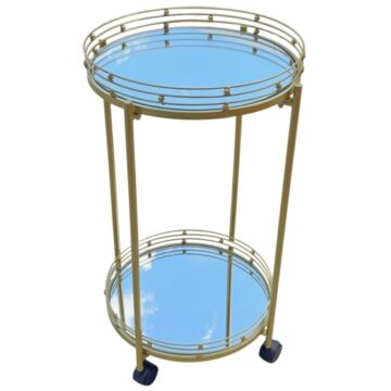 – ✨ Cylindrical Metal Trolley with Two Mirrored Glass Shelves – Ø 40 x H 67.5 cm (Ref. 6110) ✨