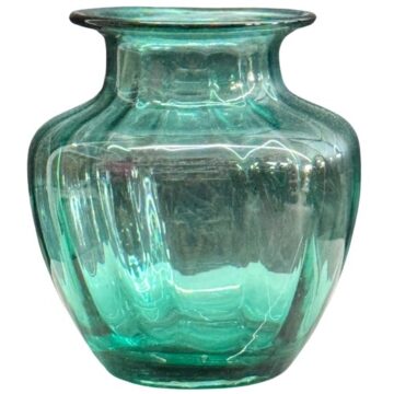 Elegant green opaque glass vase, 40 cm high, featuring a unique volcanic lava texture with rugged, uneven surfaces. Its elongated shape on both sides adds a modern and sophisticated touch. Perfect as a statement piece or for displaying fresh or dried flowers, it brings natural charm and contemporary style to any space.