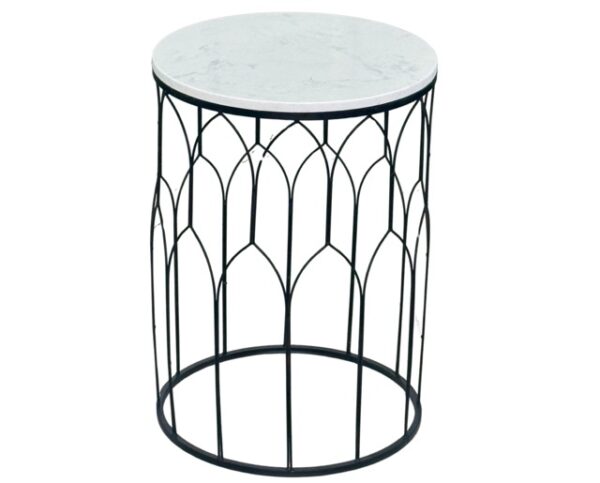 Enhance your living space with this elegant side table, featuring a sturdy black-painted metal frame and a 15 mm thick white Sinterstone top—a durable and stylish synthetic marble alternative.