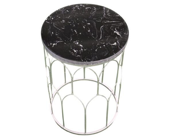– ✨ Silver Metal Side Table with Black Sinterstone Top – Ø 32 x H 47 cm Ref: 6002✨