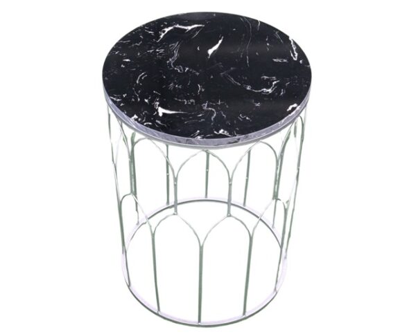 ✨ Silver Metal Side Table with Black Sinterstone Top – Ø 38 x H 53 cm Ref: 6002✨