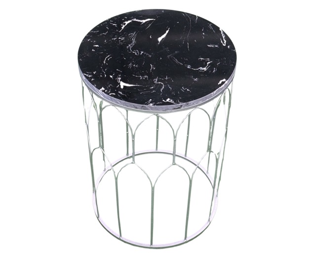 Enhance your living space with this elegant side table, featuring a sturdy silver-painted metal frame and a 15 mm thick black Sinterstone top—a durable and stylish synthetic marble alternative.
