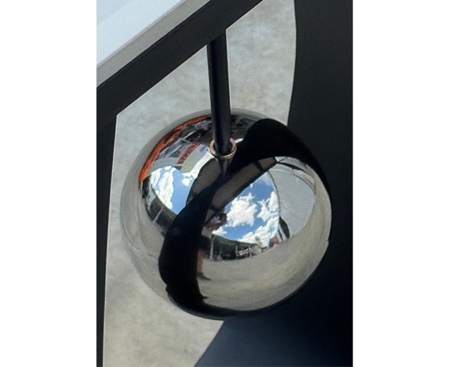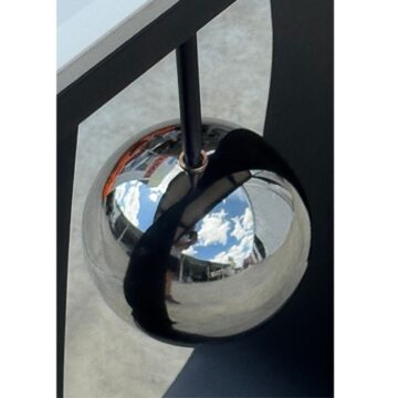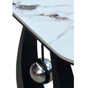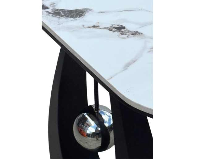 At the center, a chrome sphere appears suspended, held delicately by a slender chrome rod, adding a luxurious and eye-catching detail.
