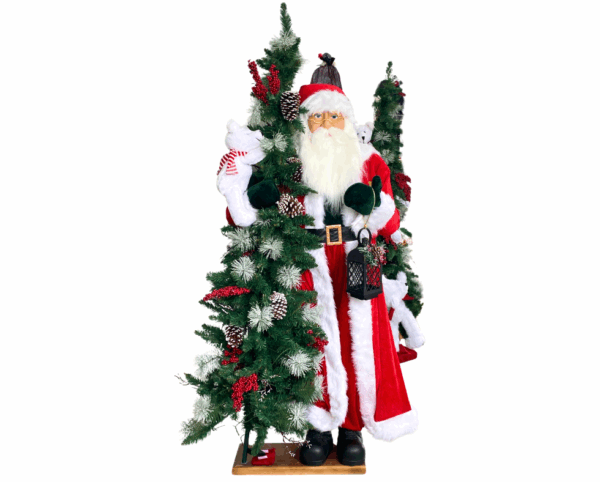 – π Life-Size Santa Claus with Tree 180 cm Tall, with Lantern & Teddy Bear β