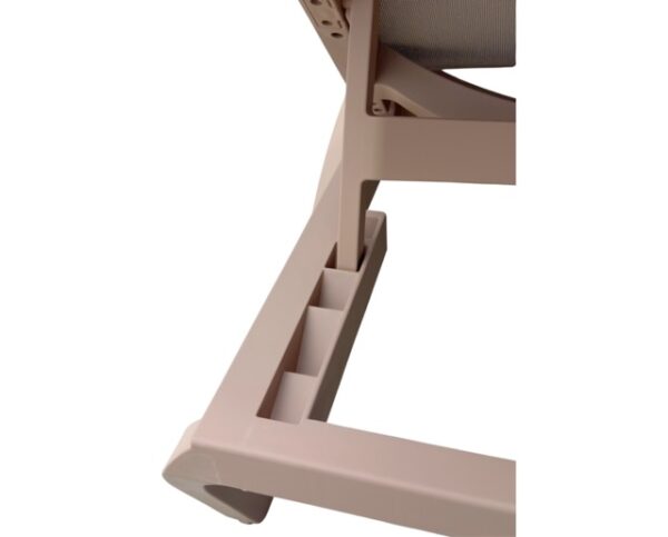 The textilene fabric is securely attached from underneath with stainless steel screws, ensuring a firm, long-lasting fit while maintaining a sleek and refined look.