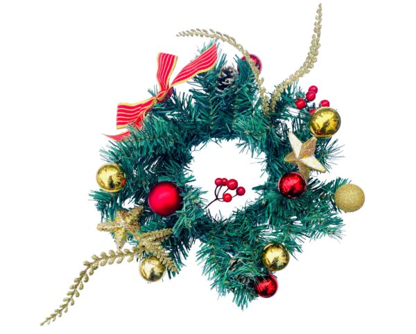 Bring festive cheer to your home with this 25 cm Christmas wreath. Crafted from lush artificial pine branches, it is beautifully decorated with colorful baubles, sparkling stars, and small red bows.