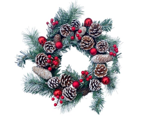 – 🎄✨Christmas Wreath Diameter 30 cm with Pine Branches, Pinecones & Red Baubles –
