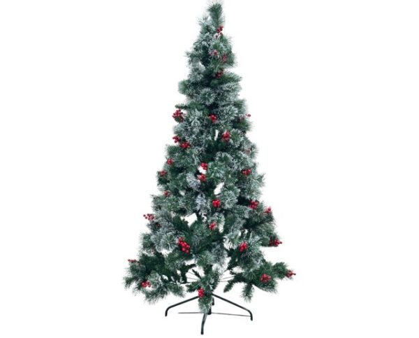 Artificial Christmas Tree with Snow-Dusted Branches & Red Berries 180 cm Tall