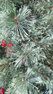 The branches feature lighter star-shaped tips adorned with small red berries, giving the tree a unique, decorative finish even before you add your ornaments. Its natural dark green base combined with these delicate details makes it an eye-catching centerpiece for any room.