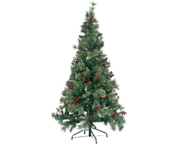 – Artificial Christmas Tree with Star-Tipped Branches & Red Berries 210 cm Tall –