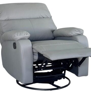 The reclining function is effortlessly activated using the manual side pull handle, allowing you to raise the footrest and recline the backrest smoothly to your ideal position. Its circular steel base provides both swivel and rocking movements, combining stability with complete freedom of motion.