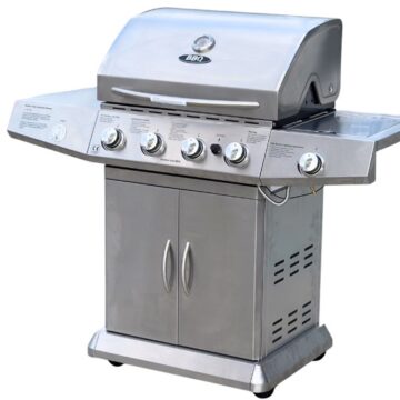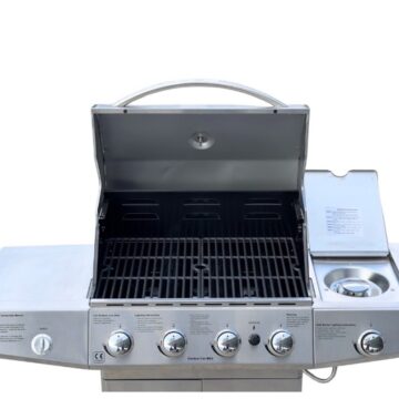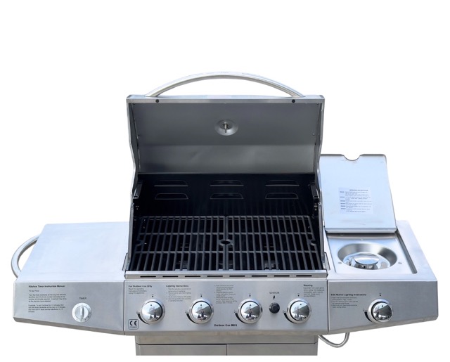 This gas barbecue grill is designed to deliver reliable performance and a sleek, modern appearance for outdoor cooking. It features four powerful main gas burners, providing consistent and even heat distribution across the entire cooking surface. A side burner adds extra versatility, ideal for preparing sauces, side dishes, or boiling accessories while grilling.
