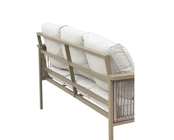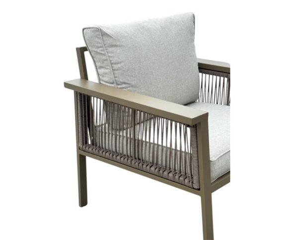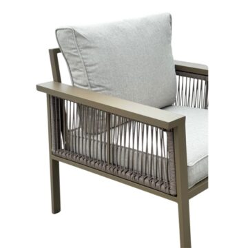 Built with a sturdy yet lightweight aluminum frame, it offers exceptional durability and resistance to corrosion. The 5 mm soft round PE rattan detailing on the back and side armrests adds a refined, natural charm that perfectly complements any outdoor décor.