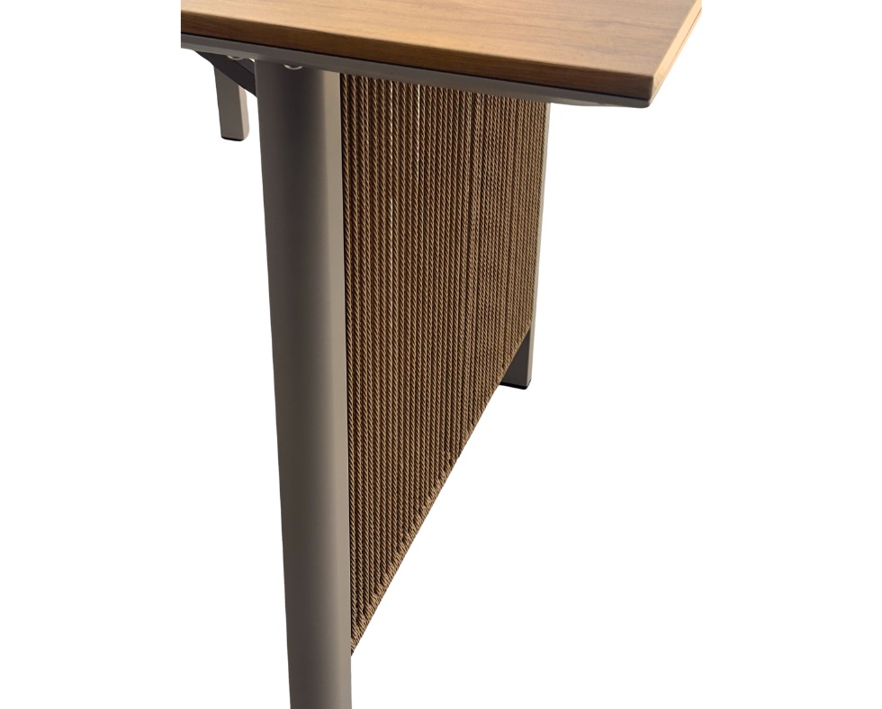 The backs of the chairs and the side panels under the table are finished with twisted PE wicker weaving (5 mm section), a premium synthetic wicker specifically designed for outdoor furniture, offering excellent durability and weather resistance.