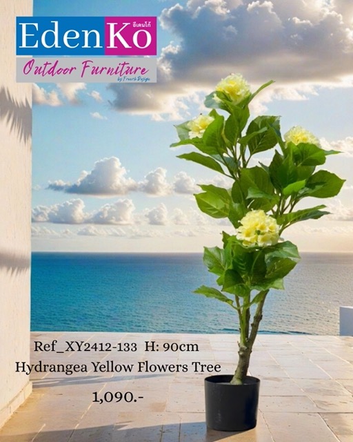 – HYDRANGEA – Artificial Shrub(Potted), Height 90 cm, Yellow Flowers. Ref_ XY2412-133