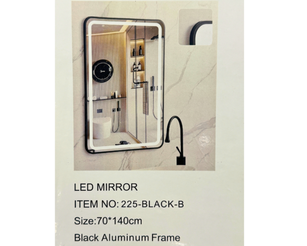 Modern LED Mirror – 70 x 140cm | Black Aluminum Frame