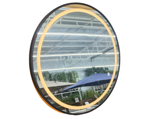 Modern LED Mirror – Ø60 cm | Black Aluminum Frame
