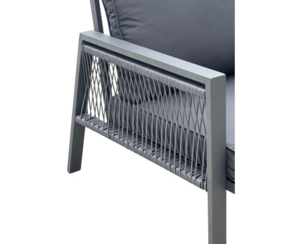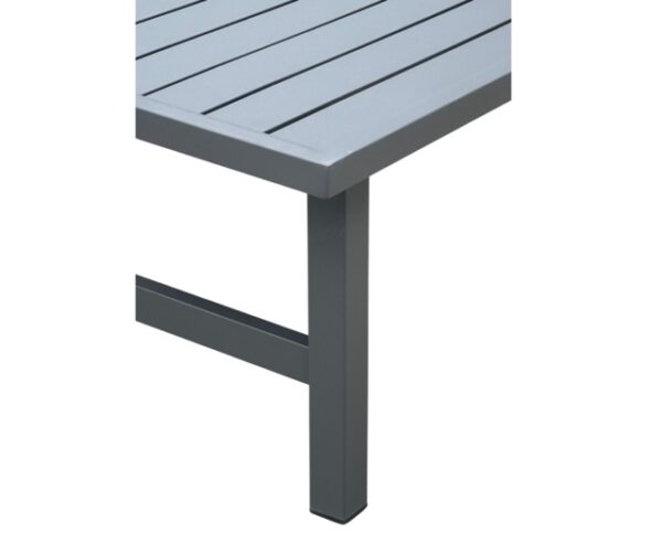 Its aluminum frame with a dark gray powder-coated finish provides strength, durability, and excellent weather resistance, while maintaining a sleek and contemporary look.