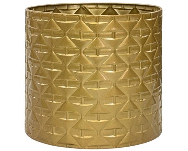 This elegant round flower pot is crafted from metal and finished in a refined golden tone. Its exterior is adorned with beautifully embossed patterns that add texture, charm and a touch of vintage sophistication. With a diameter of 30 cm and a height of 27 cm, it’s the perfect decorative accent for indoor or outdoor plants, bringing a warm and stylish glow to any space.