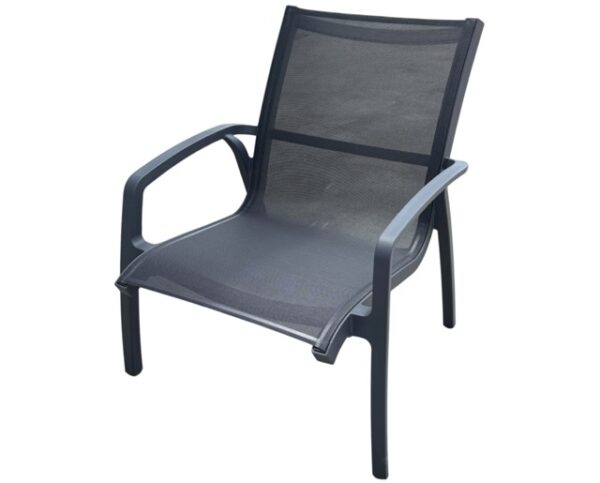– Relaxation Chair – Dark Gray PP Frame & Textilene, L 70 x W 80 x H 86 cm (Seat Height 40 cm)