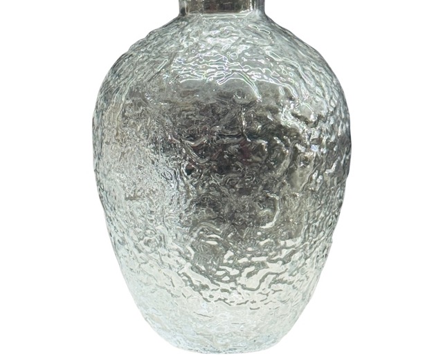 Charming rounded glass vase, 40 cm high with a maximum diameter of 28 cm. Made of translucent glass with a subtly grainy texture around its surface,