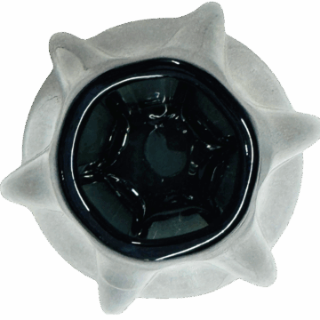 Stylish conical vase in transparent grey glass, 38 cm high with a maximum diameter of 18 cm. Its surface features six vertical bulges that create a subtle star-shaped silhouette when viewed from above. A modern and distinctive decorative piece that combines geometric elegance with timeless charm.