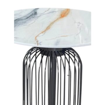 This model measures Ø 50 cm and stands 55 cm high — ideal as a side table next to a sofa, armchair, or in a modern living space. The tabletop is supported by a sculptural metal cylinder base, crafted from black-painted iron rods for a unique and artistic design.