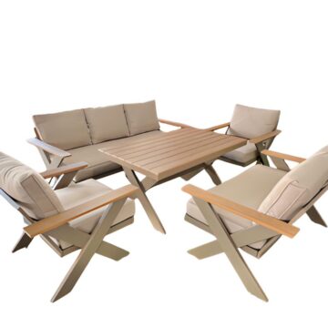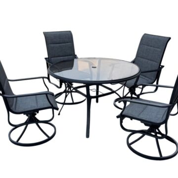– LOMBOK – Round Dining Aluminium Table Set Dia.122cm With 4 Swivel Armchairs.